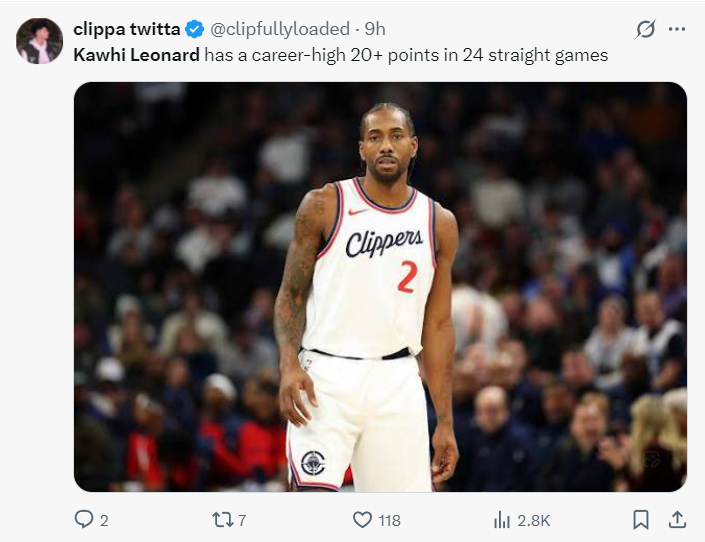 快船18战15胜!小卡场均32.1分联盟封王 连续24场20+创生涯新高